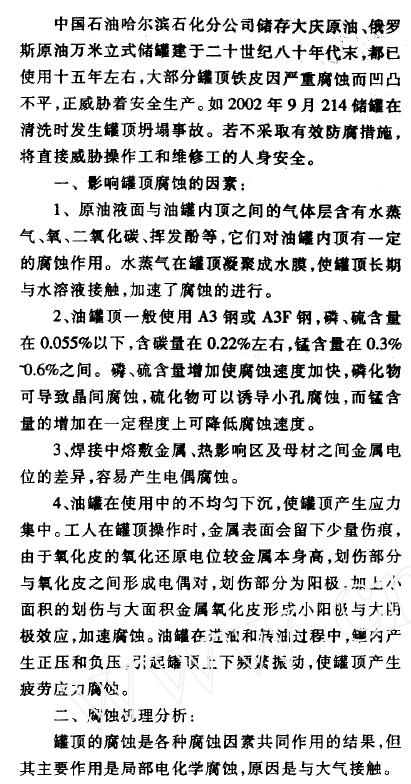·鋼質拱頂油罐罐頂腐蝕與防護加固措施