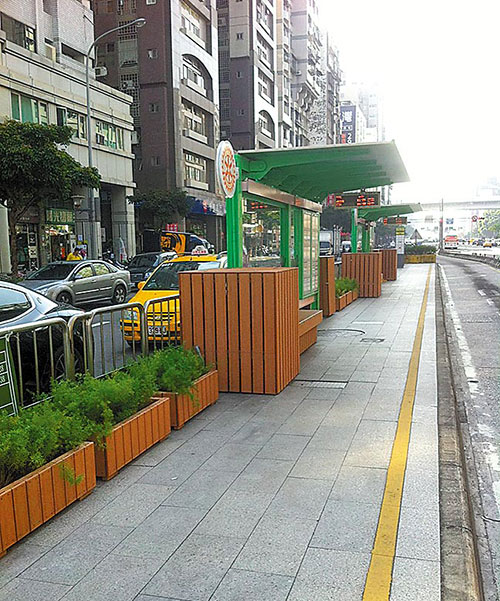 全球暖化嚴重,臺北市的公車亭也可以很環保!在市議員歐陽龍促成下,與臺北龍門扶輪社一起打造太陽能候車亭,除了太陽能節能供電,還有雨水回收澆灌系統,不但減少碳排放更有氧,每年約可省下2555元耗電。
